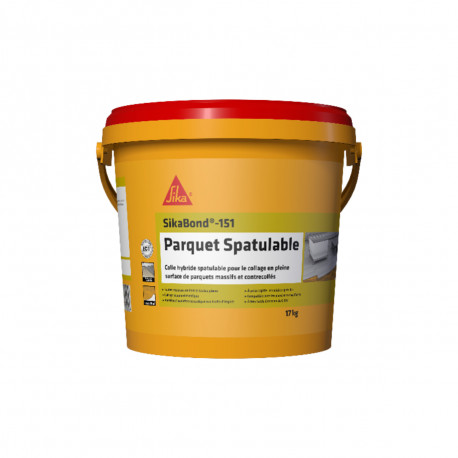 La colle élastique SIKA SikaBond-151 Parquet Spatulable - 17kg convient pour le collage de la plupart des parquets courants, en étant adapté à toutes les essences de bois, ainsi que pour la pose sur sol chauffant. Ce produit vous surprendra par sa faciliter de mise en oeuvre, sa rapidité de polymérisation et vous permettra de réduire la sonorité des bruits d'impacts.