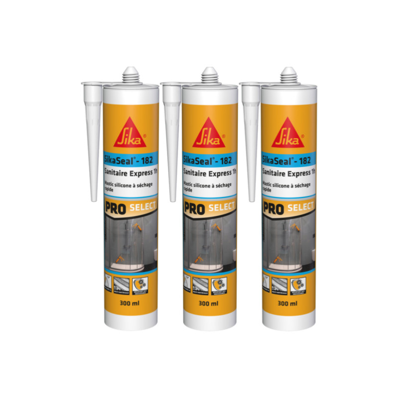 Un lot de 3 mastics silicone à séchage rapide SIKA SikaSeal-182 Sanitaire Express 1h - Transparent - 300ml
