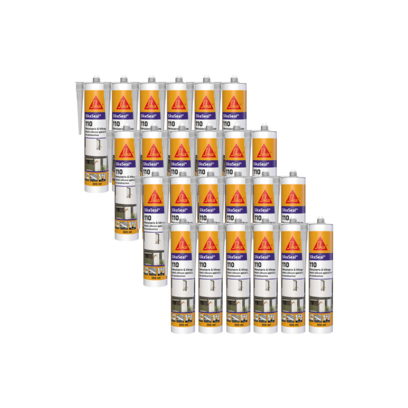Un lot de 24 mastics silicone SIKA SikaSeal 110 Menuiserie & Vitrage - Transparent - 300ml