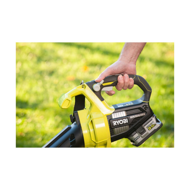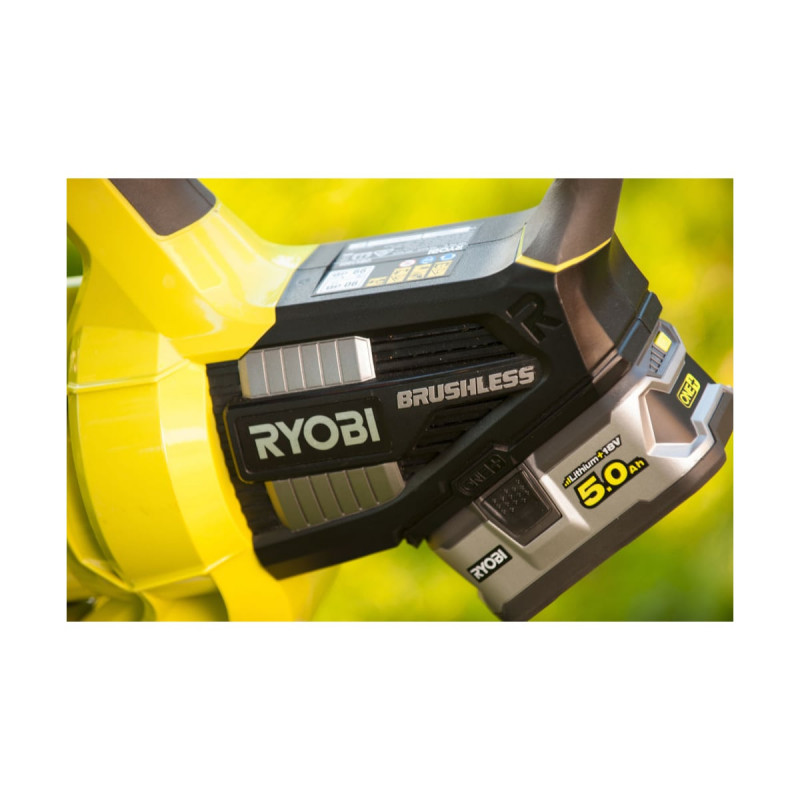 Le souffleur aspiro-broyeur RYOBI 18V LithiumPlus Brushless - 1 batterie 5.0 Ah - 1 chargeur rapide est un appareil 2-en-1 pratique qui sert autant pour souffler des feuilles que pour les aspirer et les broyer. Vous pourrez passer d'un mode à l'autre en un rien de temps. Grâce au moteur sans charbons "Brushless" ainsi qu'au bouton Turbo boost, vous aurez entre les mains un souffleur aspiro-broyeur qui saura délivrer des hautes performances. Il appartient à la gamme 18V OnePlus dans laquelle une seule batterie est compatible avec de nombreux outils. D'ailleurs, vous trouverez ici une batterie 5,0Ah ainsi qu'un chargeur rapide, pour permettre une utilisation immédiate.