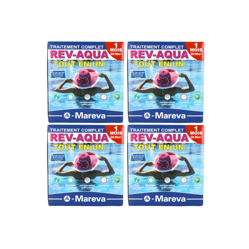 Lot de 4 kits Rev-Aqua MAREVA traitement complet pour piscine de 60 à 90 m3 - 2 mois