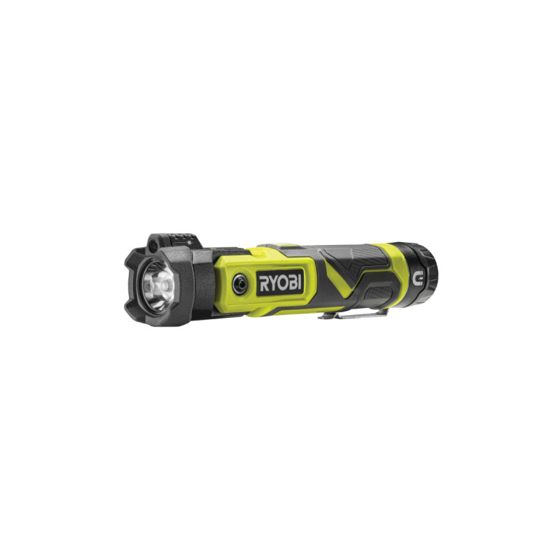 La lampe torche RYOBI 4V USB Lithium - 640 lumens - Sans batterie ni chargeur - RLP4-0 est idéale pour éclairer des zones d'ombre ou vous promenez lorsque le soleil s'est couché. Grâce à sa petite taille, vous pourrez facilement l'emporter partout. La tête pivotante vous permettra de régler l'orientation du faisceau lumineux et de mieux s'adapter à la situation. La lampe s'accroche à la ceinture à l'aide d'un crochet et une base aimantée permet de la poser ou la fixer partout. Cet outil est compatible avec les batteries 4V de la gamme USB Lithium.