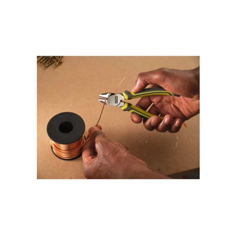 La pince coupante RYOBI - 180 mm - RHCP180 est adaptée pour effectuer des coupes de précision, y compris dans des espaces restreints. Le bord tranchant permet ainsi de sectionner des fils, des clous, du plastique et d'autres matériaux. Sa conception ergonomique respecte les normes DIN/ISO, tout en offrant une prise en main optimale ainsi qu'un effet de levier renforcé.