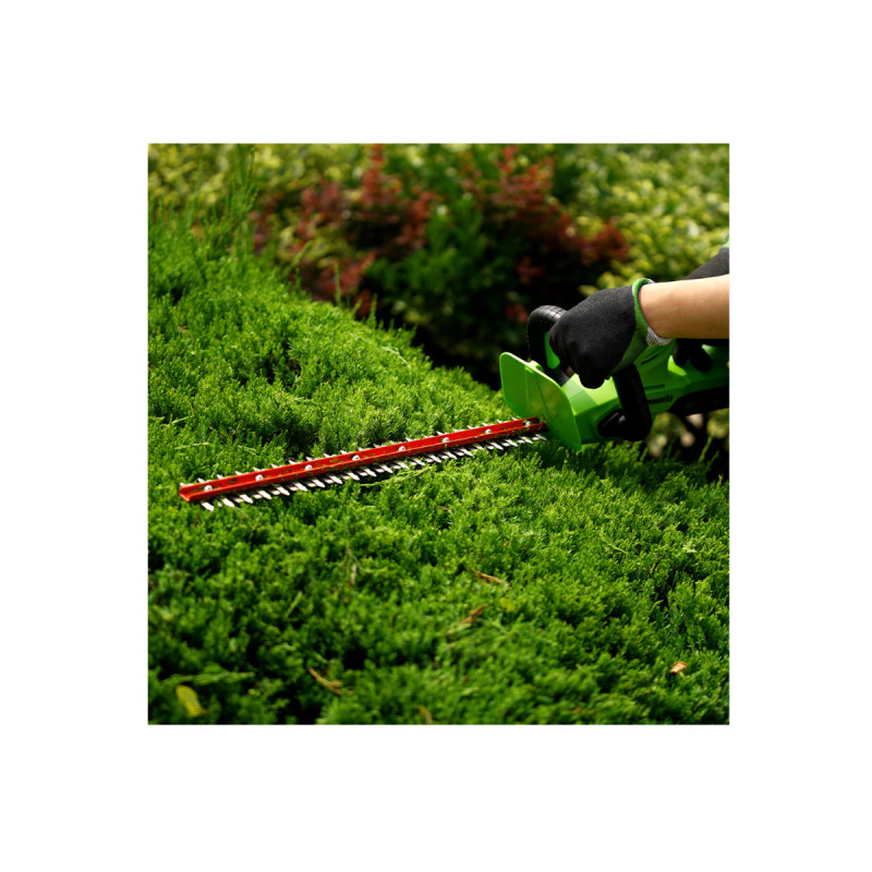 Doté d’une lame de 61 cm, ce taille-haies permet de travailler efficacement les haies avec précision. Son poids léger de seulement 2,8 kg facilite la prise en main et réduit la fatigue lors des travaux prolongés. Les lames doublement affûtées assurent une coupe nette et propre, tandis que le système à double action – avec deux lames mobiles fonctionnant simultanément à 3 000 coupes par minute – garantit une taille régulière et une finition soignée, supérieure aux modèles à lame simple.