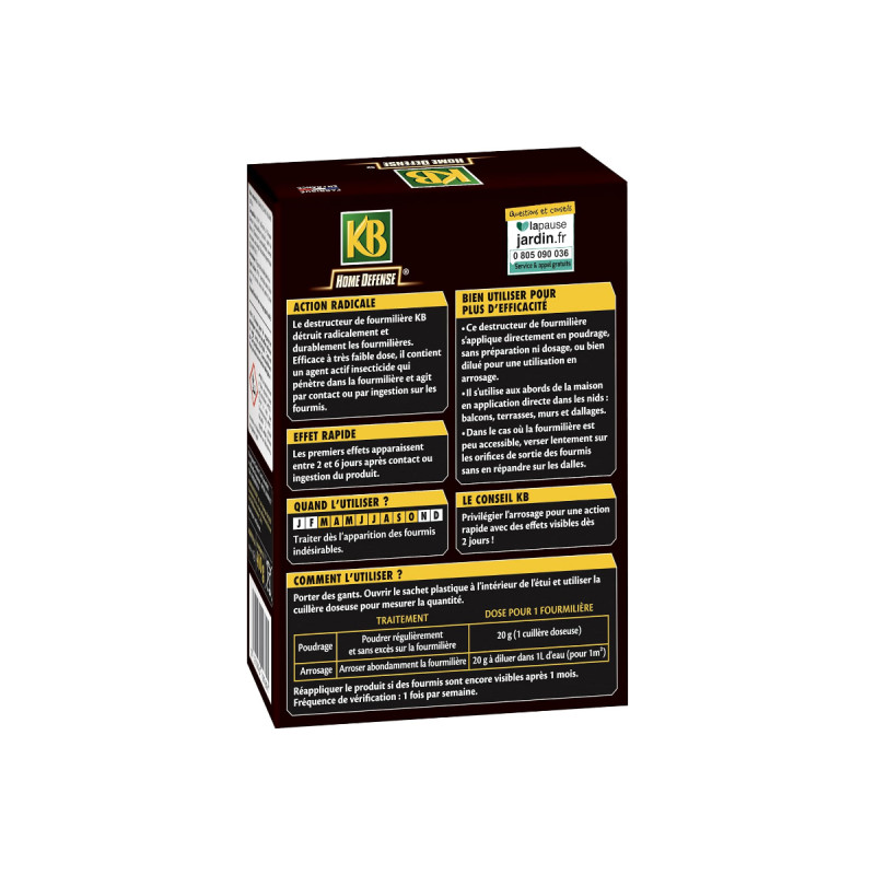 Grâce au Destructeur de fourmilière FERTILIGÈNE - 400g, vous pourrez éliminer plusieurs fourmilières ! Ce produit est à utiliser partout en extérieur, que ce soit aux abords de votre maison, dans le jardin, sur une terrasse, sur un balcon ou encore sur des murs. Vous aurez des premiers résultats après seulement 2 jours.