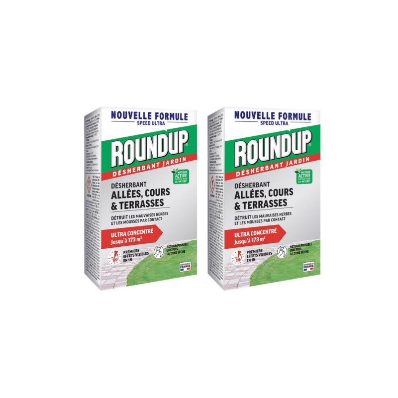 Le désherbant concentré allées et terrasses ROUNDUP - 400ml est idéal pour traiter des grandes surfaces jusqu'à 173 m² et ainsi se débarrasser des mauvaises herbes qui peuvent apparaître dans votre allée ou sur une terrasse. Sa formule ultra-concentrée vous assure d'observer des premiers résultats en seulement 1 heure. Après traitement, une fois la zone séchée, le retour des animaux est possible.