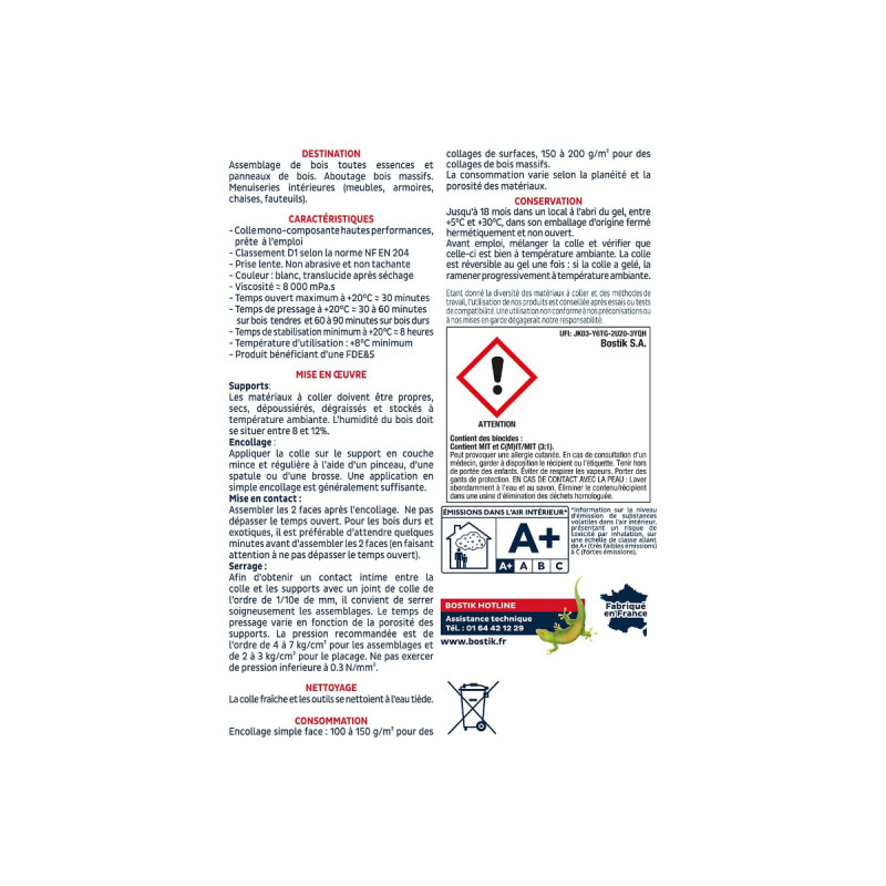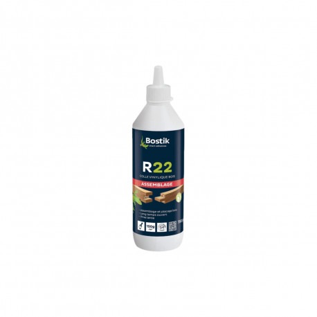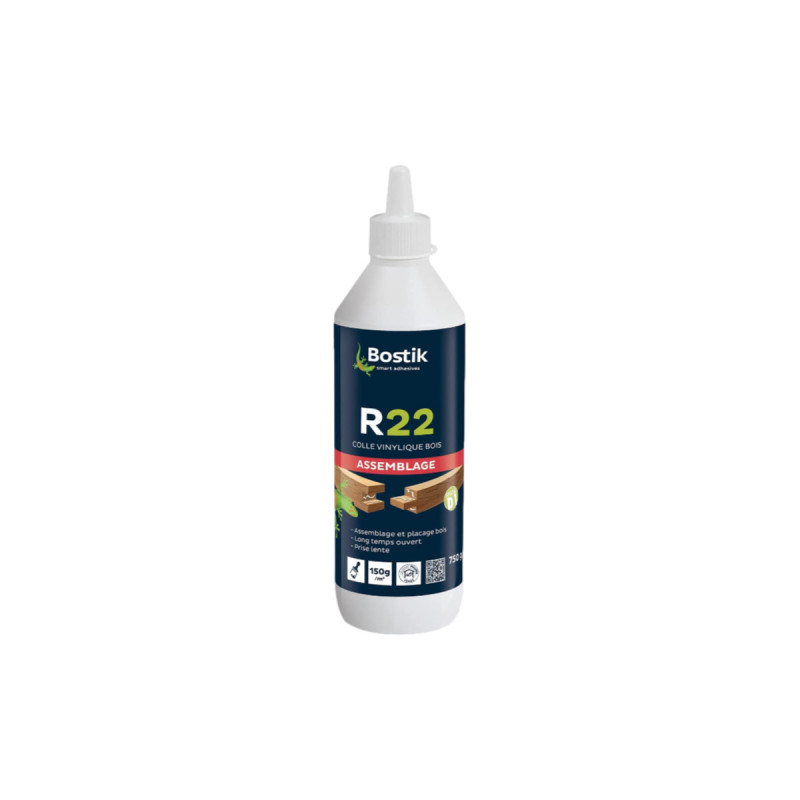 Colle vinylique à bois Bostik R22 format biberon 750g pour assembler et placer toutes essences à prise lente, prête à l'emploi. Travaillez sur les surfaces propres, sèches et planes. Assemblage de bois, placage de stratifiés à froid et à chaud sur panneaux de particules.