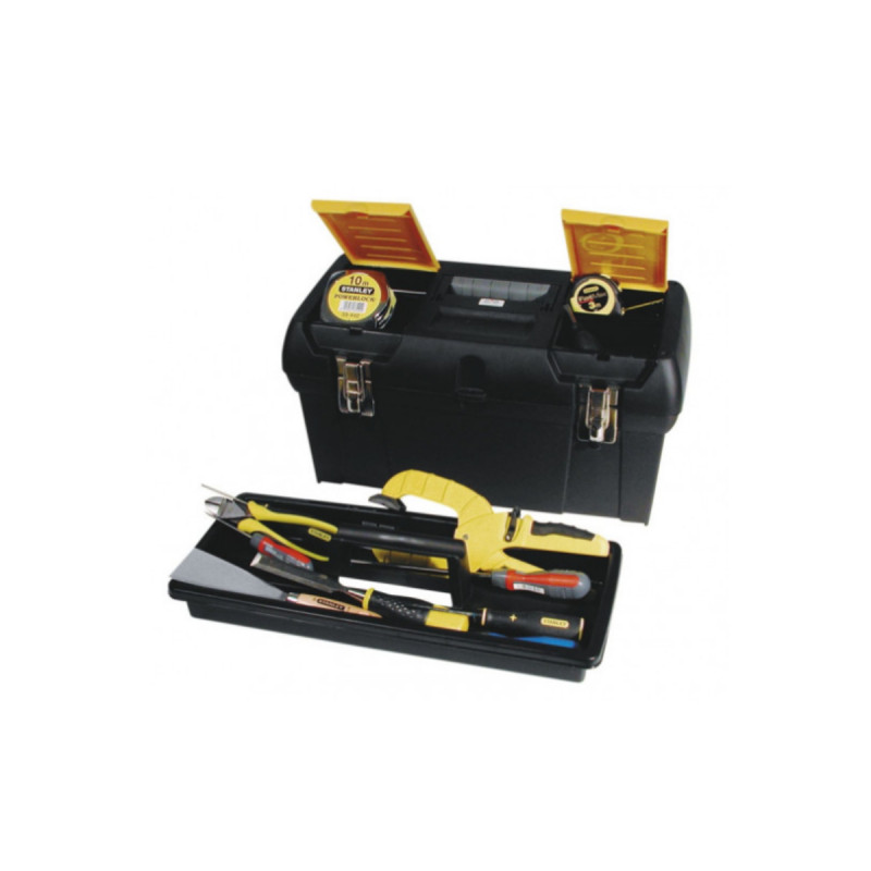 La caisse à outils Seriepro STANLEY - 48cm est idéale pour emporter vous vos outils lors de vos déplacements ou pour simplement les ranger tous au même endroit. En plus des outils à main, vous pourrez ranger de la visserie dans deux petits organiseurs placés sur le couvercle.