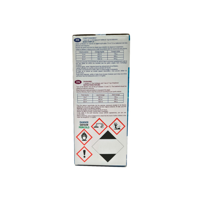 Ce stop algue moutarde MAREVA pour piscine jusqu'à 50m3 - 1 kg - 150080 vous permettra d’éradiquer les algues moutardes de votre piscine. Véritable cauchemar des propriétaires de piscine, ces algues jaunes moutarde composées de poussières infectées provenant des vents du Sahara sont particulièrement dures à déceler, se déplaçant au moindre remous, et à traiter. Ce purifiant viendra à bout de ces algues coriaces. Tout d’abord, il est conseillé de vérifier le pH de votre piscine, qui doit se situer entre 7,0 et 7,2. Ensuite, il faut réaliser un pré nettoyage intensif, afin d’enlever les germes d’algues accrochés aux parois ; c’est une étape cruciale afin que le traitement soit efficace. Veuillez également noter qu’il est important de bien nettoyer tout le matériel qui est entré en contact avec l’eau de la piscine (jouets, gonflables…) pour bien enlever tous les germes.