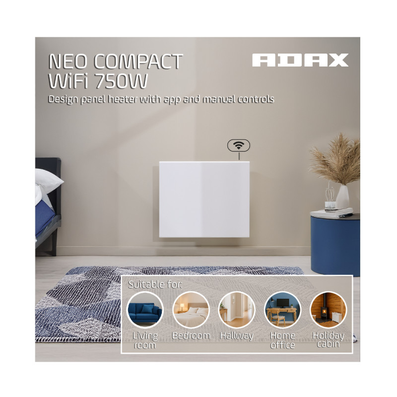 Grâce à son thermostat Wi-Fi intégré, vous pouvez ajuster la température depuis votre smartphone via l’application Wi-Fi Adax, que vous soyez à la maison, au bureau ou même dans votre chalet. En cas de perte de Wi-Fi, il évidemment possible de régler le thermostat de manière classique. Sa conception IP24 le rend résistant aux éclaboussures, avec une double isolation et une protection contre la surchauffe. Ce radiateur a été fabriqué avec une électricité 100% durable et il répond également à la réglementation Ecodesign 2018 pour une performance énergétique optimale. La gamme Neo Compact reprend les points forts de la gamme Neo classique en proposant des radiateurs plus compacts capables de trouver leur place dans toutes les pièces, qu'importe leur taille.