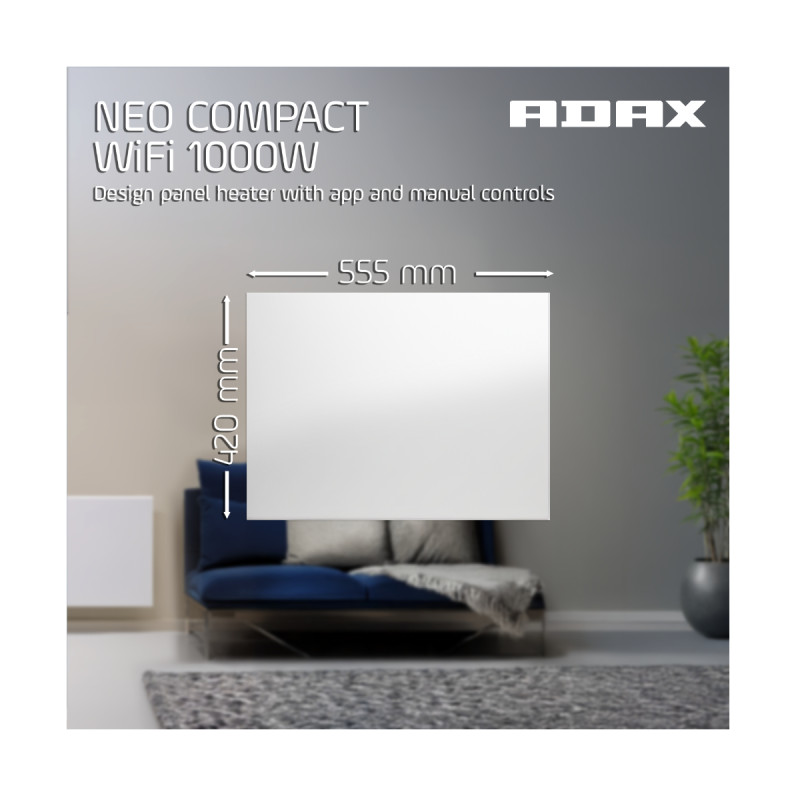 Radiateur électrique compact ADAX Wi-FI - Blanc - 1000 W - 55,5 x 42 x 8,7 cm - NEO COMPACT 10 KWT