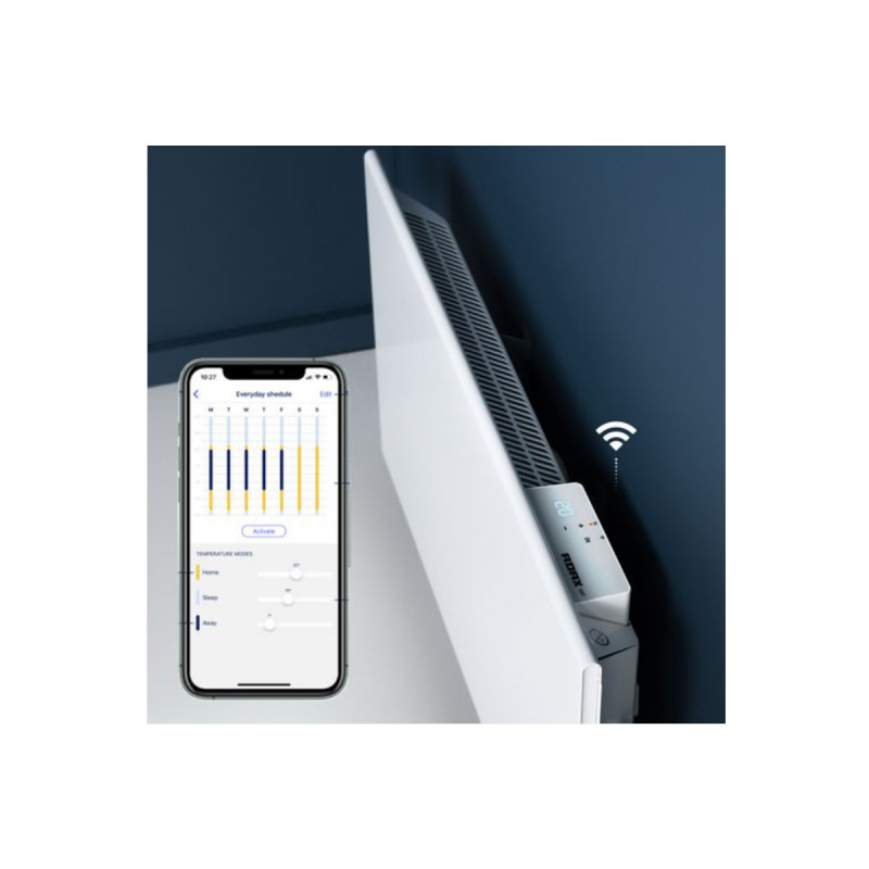 Le radiateur électrique compact ADAX connecté Wi-FI - Blanc - 1000 W - NEO COMPACT 10 KWT arbore un design élégant, avec un panneau qui saura se fondre à merveille dans votre intérieur. Grâce à son thermostat Wi-Fi intégré, vous pouvez ajuster la température depuis votre smartphone via l’application Wi-Fi Adax, que vous soyez à la maison, au bureau ou même dans votre chalet. En cas de perte de Wi-Fi, il évidemment possible de régler le thermostat de manière classique. Il est adapté davantage pour les pièces de 10 à 14 m² avec des dimensions de 56 x 42 x 9 cm (L x H x P). Sa conception IP24 le rend résistant aux éclaboussures, avec une double isolation et une protection contre la surchauffe. Ce radiateur a été fabriqué avec une électricité 100% durable et il répond également à la réglementation Ecodesign 2018 pour une performance énergétique optimale. La gamme Neo Compact reprend les points forts de la gamme Neo classique en proposant des radiateurs plus compacts capables de trouver leur place dans toutes les pièces, qu'importe leur taille.