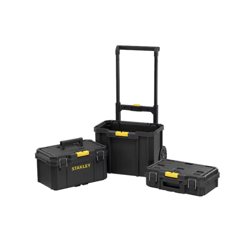La servante sur roues 3 en 1 Quicklink STANLEY - capacité 45kg est une solution de rangement complète. Elle est composé d'une boîte à outils compacte, d'une boîte à outils profonde avec porte-outils intégré et d'un coffret de chantier. L'ensemble se transporte sur deux roues robustes de 17cm. Vous pourrez ainsi transporter tout votre matériel partout lorsque vous en avez besoin.