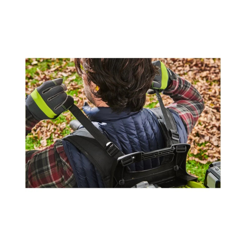 Le souffleur à dos Whisper Brushless 36V RYOBI - Soufflerie 277 km/h - Sans batterie ni chargeur - RY36BPXB-0 est adapté pour les tâches de soufflage les plus exigeantes, dans une allée, sur une terrasse ou encore dans un grand jardin. Ce souffleur appartient à la gamme Whisper, il combine ainsi une vitesse de soufflerie exceptionnelle de 277 km/h tout en limitant les nuisances sonores. De plus, il possède un moteur Brushless qui décuple ses performances et sa puissance. Le débit d'air et le bouton Turbo Boost vous permettra de chasser les débris importants ou humides sans problème, y compris sur des surfaces grandes. Contrairement à un souffleur classique, celui-ci se fixe sur votre dos à l'aide d'un harnais, rendant l'utilisation prolongée moins fatigante. Le compartiment d'alimentation peut accueillir deux batteries pour une utilisation prolongée en cas de besoin (le souffleur fonctionne également avec une seule batterie). Appareil compatible avec toutes les batteries 36V de la gamme Max Power (vendues séparément).