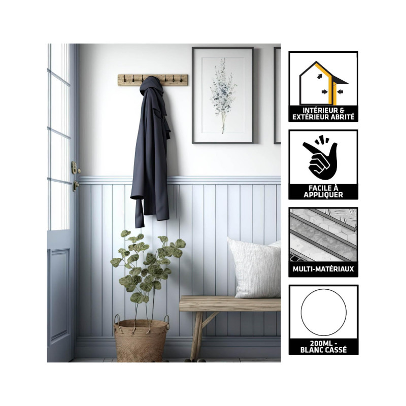 La Colle SIKA Sikabond-240 Fixe Facile - Blanc - 260g est une colle acrylique haute performance idéale pour les travaux d’agencement en intérieur et en extérieur abrité. Sa formule extra forte assure une fixation durable sans clou ni vis. Compatible avec une large gamme de matériaux, elle offre un temps de repositionnement dans les premières minutes pour un ajustement précis. Son application est simple et ne nécessite aucun pistolet à mastic, grâce à son tube prêt à l’emploi et facile à nettoyer. Pour une adhérence optimale, l’un des supports doit être poreux ou absorbant. Avec ses faibles émissions, elle contribue à un environnement intérieur plus sain.