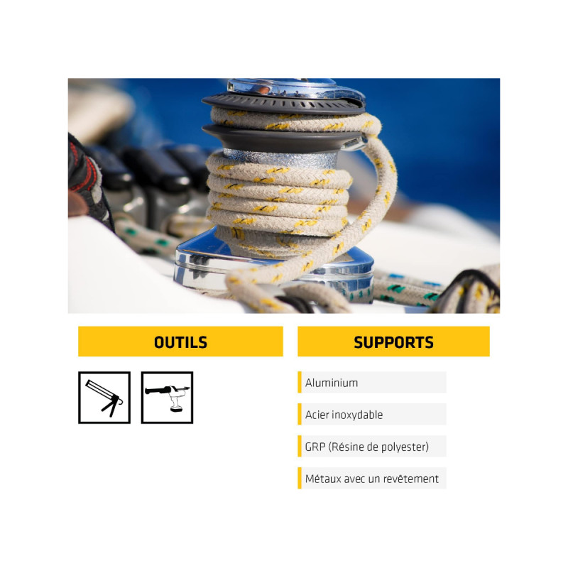 Cette colle mastic hybride marine SIKA Sikaflex-591 - Blanc - 300ml est un produit idéal pour différents travaux sur votre bateau. Vous pourrez réaliser différentes tâches comme des joints d'étanchéité, pose d'élément, collage divers ainsi que de l'étanchéité intérieure et de passe-coques. Cette colle s'utilise autant en intérieur qu'en extérieur, tout en vous garantissant une excellente résistance face aux environnements marins. Sa composition est sans isocyanates, sans solvants, sans PVC, sans phtalates et sans catalyseur étain