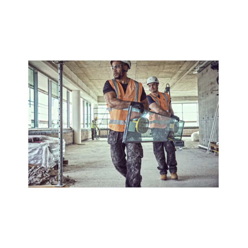 La ventouse de levage Grabo 18V DEWALT - Sans batterie ni chargeur - DCE590N-XJ est un outil innovant conçu pour faciliter le levage et le transport de matériaux lourds et délicats sur les chantiers de construction et lors des travaux d'installation. Alimenté par une batterie 18V XR, ce dispositif offre une autonomie prolongée et une grande liberté de mouvement, éliminant le besoin de câbles encombrants. Grâce à sa technologie de levage par aspiration, il assure une prise sécurisée sur divers matériaux, qu'ils soient lisses ou poreux, tels que le verre, le métal, le bois, la pierre, les carreaux céramiques et les plaques de plâtre. Son capteur de pression numérique intégré ajuste automatiquement le niveau de vide et avertit l'utilisateur en cas de diminution de la pression, garantissant ainsi une utilisation en toute sécurité. Léger et ergonomique, le kit est conçu pour réduire la fatigue de l'utilisateur, rendant les tâches de levage plus sûres et plus efficaces. La ventouse est compatible avec les batterie 18V de DeWalt (vendue séparément).