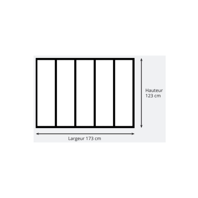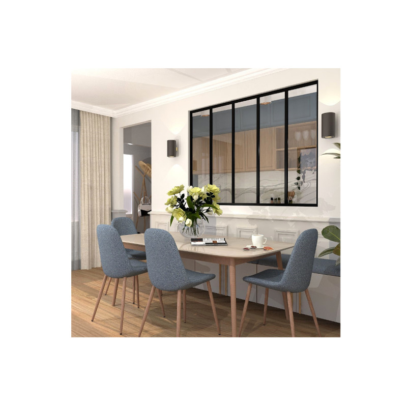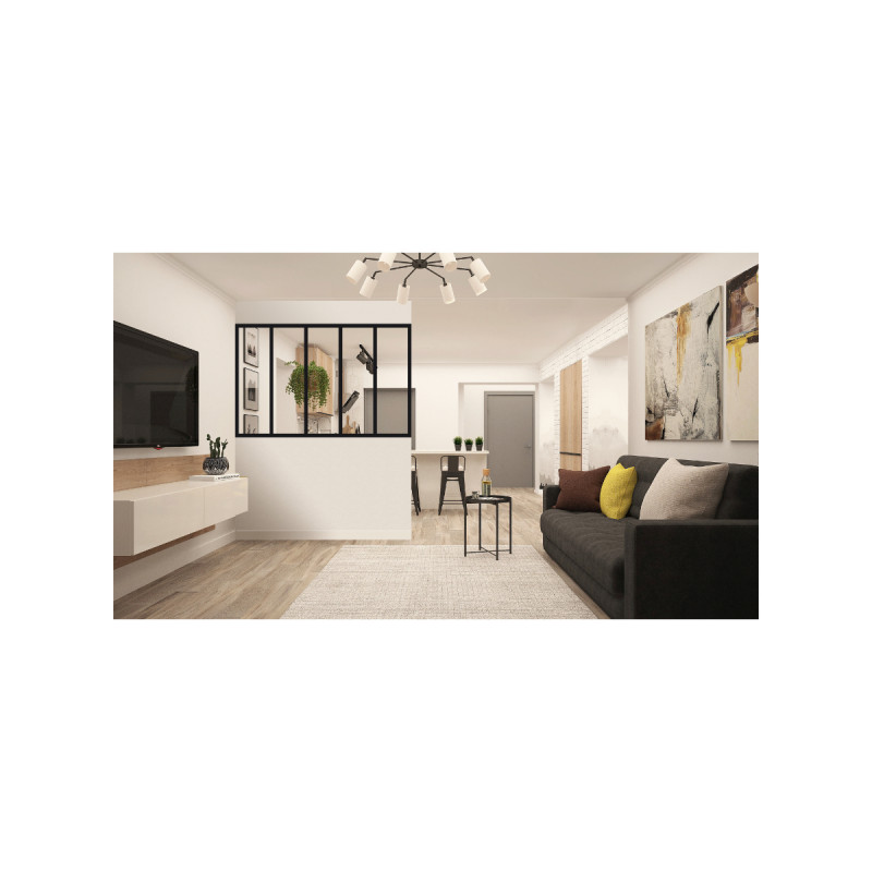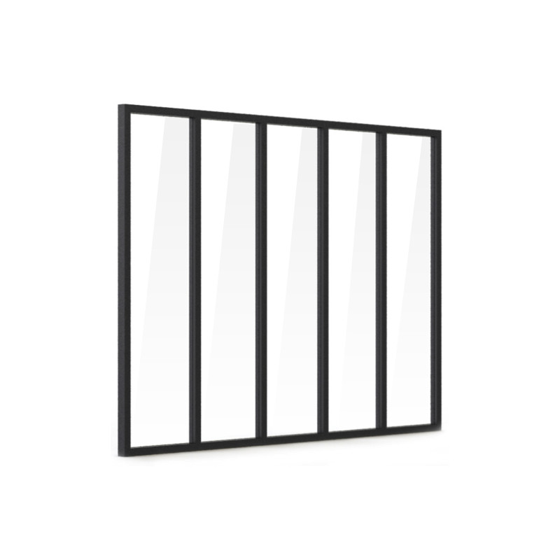 La verrière d'intérieur en aluminium - 5 vitrages - Noir - 173 x 123 cm est l’élément parfait pour cloisonner vos espaces tout en conservant la luminosité naturelle. Son design élégant et ses proportions harmonieuses en font un véritable atout esthétique pour votre intérieur. Grâce à ses profils en aluminium ultra-fins de seulement 28 mm en face vue, elle offre un rendu moderne et épuré qui s’intègre facilement à tous les styles de décoration. Cette verrière est facile à assembler et à poser, s’adaptant à tous types de supports. Elle est livrée avec ses vitrages et ses fixations murales pour une installation simplifiée. Son installation s’adapte à votre projet : elle peut être posée en nez-de-cloison sans ajout de profil, ou en angle avec l’ajout du profil de poteau d’angle (vendu séparément). Son aluminium thermolaqué noir (RAL 9005) à la finition fine texture (sablé) lui confère une grande résistance tout en sublimant son design. Cette verrière est également réparable et déplaçable, offrant une flexibilité appréciable en cas de modification de votre aménagement intérieur. Fabriquée et conçue en France, elle garantit une qualité irréprochable et une durabilité optimale.