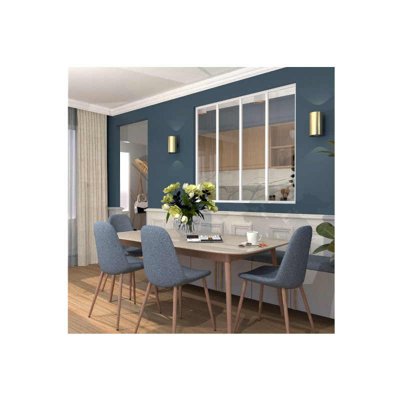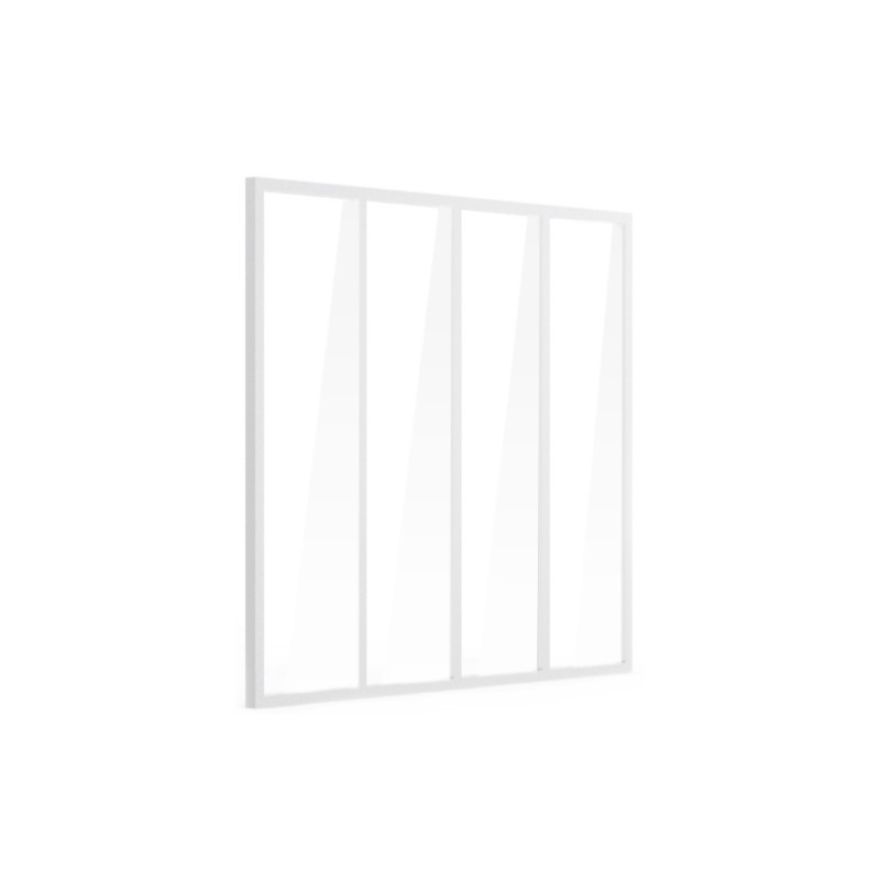La verrière d'intérieur en aluminium - 4 vitrages - Blanc - 139 x 123 cm est l’élément parfait pour cloisonner vos espaces tout en conservant la luminosité naturelle. Son design élégant et ses proportions harmonieuses en font un véritable atout esthétique pour votre intérieur. Grâce à ses profils en aluminium ultra-fins de seulement 28 mm en face vue, elle offre un rendu moderne et épuré qui s’intègre facilement à tous les styles de décoration. Cette verrière est facile à assembler et à poser, s’adaptant à tous types de supports. Elle est livrée avec ses vitrages et ses fixations murales pour une installation simplifiée. Son installation s’adapte à votre projet : elle peut être posée en nez-de-cloison sans ajout de profil, ou en angle avec l’ajout du profil de poteau d’angle (vendu séparément). Le cadre en aluminium couvert d'un blanc (RAL 9016 FT) élégant lui confère une grande résistance tout en sublimant son design. Cette verrière est également réparable et déplaçable, offrant une flexibilité appréciable en cas de modification de votre aménagement intérieur. Fabriquée et conçue en France, elle garantit une qualité irréprochable et une durabilité optimale.