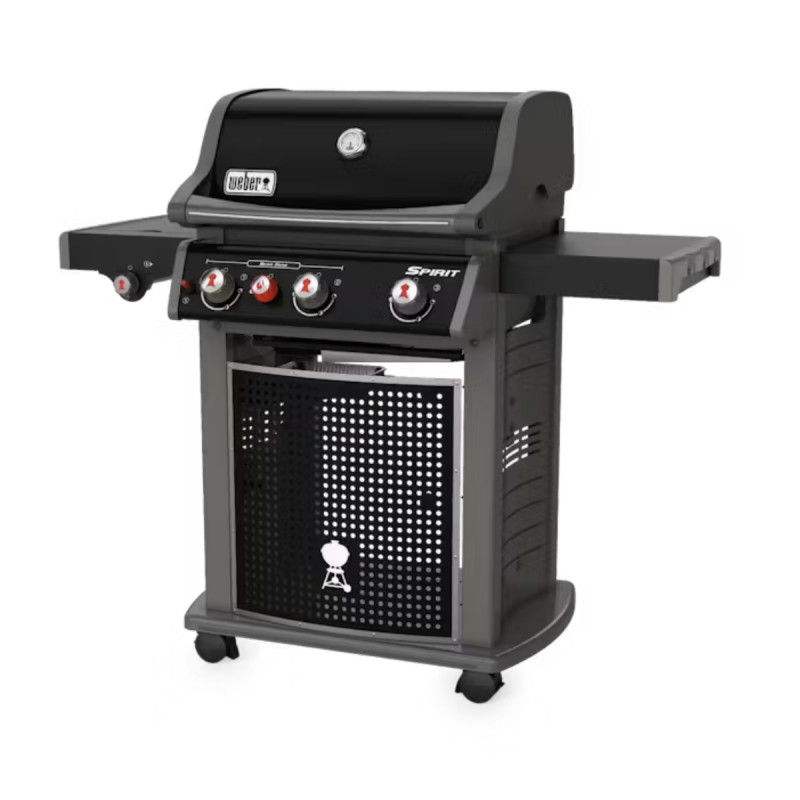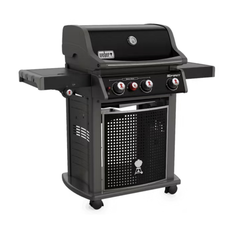 Le barbecue à gaz Weber Spirit E‑330 GBS allie robustesse, performance et convivialité. Doté de trois brûleurs en acier inoxydable, il assure une cuisson homogène sur une large surface de 63 × 45 cm. Son système de diffusion de chaleur “Flavorizer Bars” transforme les jus de cuisson en fumée savoureuse, rehaussant les arômes des viandes, poissons et légumes. La grille Gourmet BBQ System (GBS) permet d’accueillir accessoires dédiés (plancha, wok, pierre à pizza…), offrant une grande polyvalence culinaire. Pensé pour un usage quotidien, ce modèle présente une ergonomie soignée : allumage piezo simple, commandes frontales accessibles, tablettes latérales pratiques avec crochets pour les ustensiles, et deux roulettes facilitant le déplacement. Son couvercle en acier émaillé conserve la chaleur et garantit une cuisson régulière, tandis que les briques réfractaires repositionnables sur la plaque arrière permettent une cuisson indirecte maîtrisée, idéale pour les rôtis ou les gros morceaux. Son design sobre noir s’intègre dans tous les extérieurs, du balcon urbain aux jardins spacieux. Ce barbecue est la solution idéale pour les amateurs exigeants qui cherchent à combiner performance, simplicité d’utilisation et qualité de cuisson.