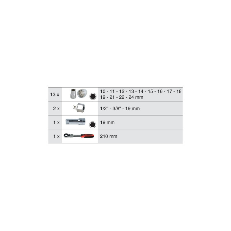 Coffret de douilles traversantes TRIPLEplus KS TOOLS - 3/8'' - 1/2'' - 10 à 24 mm