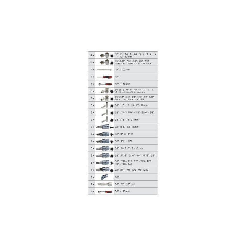 Coffret de douilles et accessoires ULTIMATE pouces et métrique KS TOOLS - 3/8'', 99 pcs