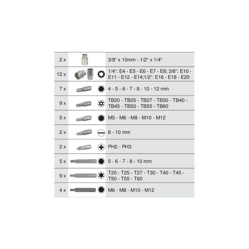 | Type d'outil | Coffret de douilles et douilles tournevis |