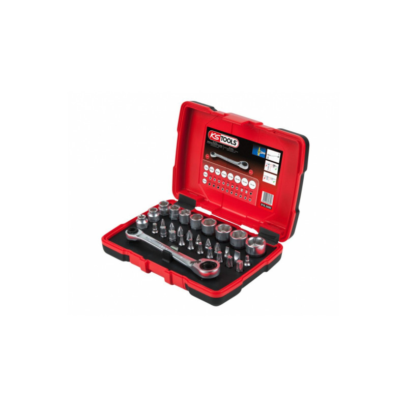 Coffret de douilles traversantes de 5 à 14mm et embouts de vissage 1/4 KS TOOLS, 31 pcs