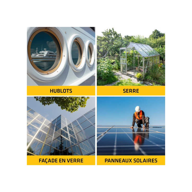 Spécialement formulé pour le collage de vitrages, ce mastic silicone est destiné aux applications VEC (Vitrage Extérieur Collé), au collage de modules solaires ainsi qu’à diverses applications industrielles nécessitant une fixation durable et sécurisée. Sa polymérisation neutre garantit une excellente compatibilité avec les supports sensibles.
