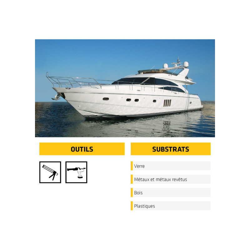 Grâce à sa formulation avancée, il assure une excellente résistance aux UV et au vieillissement, garantissant la stabilité et la durabilité des collages exposés aux conditions extérieures sur le long terme.