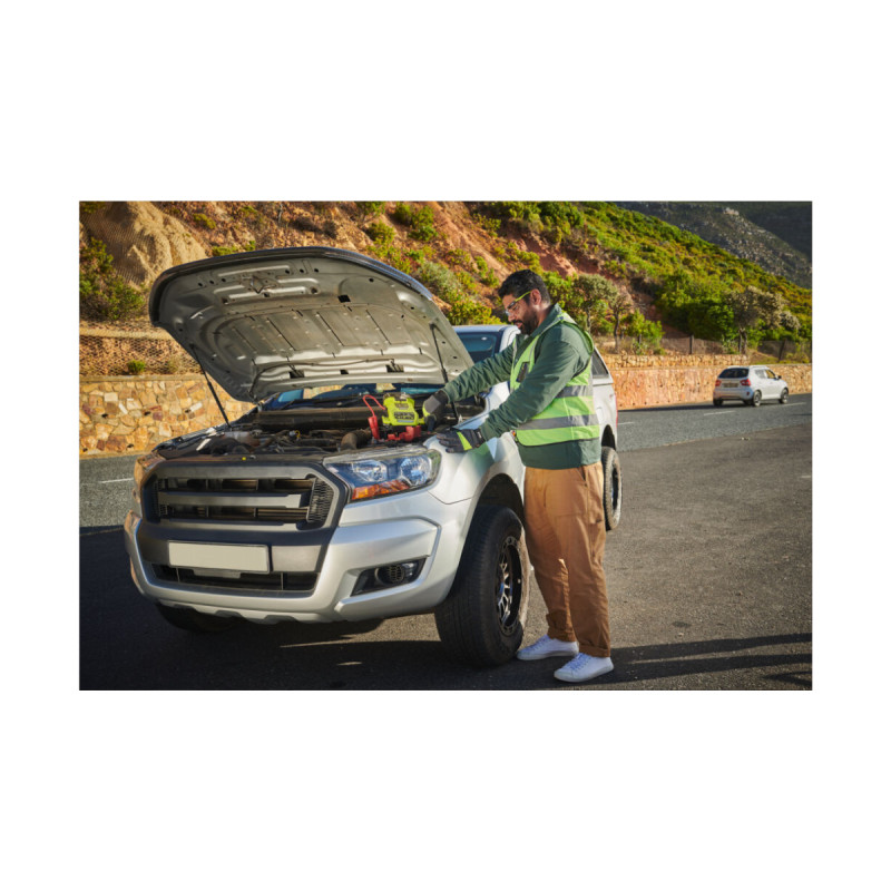Pensé pour une utilisation simple et efficace, il dispose également d’un indicateur LED de démarrage permettant de savoir précisément quand tourner la clé de contact. Une lampe de travail LED intégrée éclaire la zone d’intervention, idéale pour les dépannages en bord de route ou dans des conditions de faible luminosité.