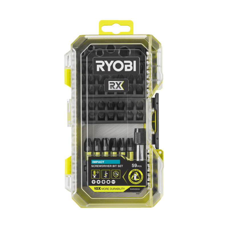 Ce coffret d’embouts de vissage à impact RYOBI RX est conçu pour offrir des performances élevées et une grande résistance lors des travaux de vissage intensifs. Issus de la gamme d’accessoires haute performance RYOBI RX, ces embouts sont spécialement développés pour supporter des couples élevés et répondre aux exigences des visseuses à choc. Leur conception robuste leur permet d’offrir une durée de vie jusqu’à dix fois supérieure à celle des embouts de vissage standards de la gamme RYOBI.