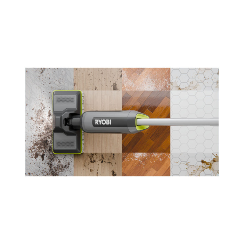 La serpillère est compatible avec les batteries 4V de RYOBI (vendue séparément).