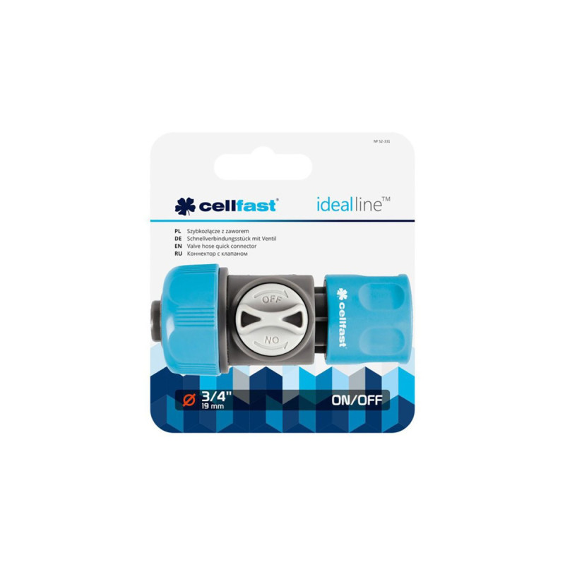 Raccord rapide avec vanne 6 bar CELLFAST - 1/2 po - Réf 70016