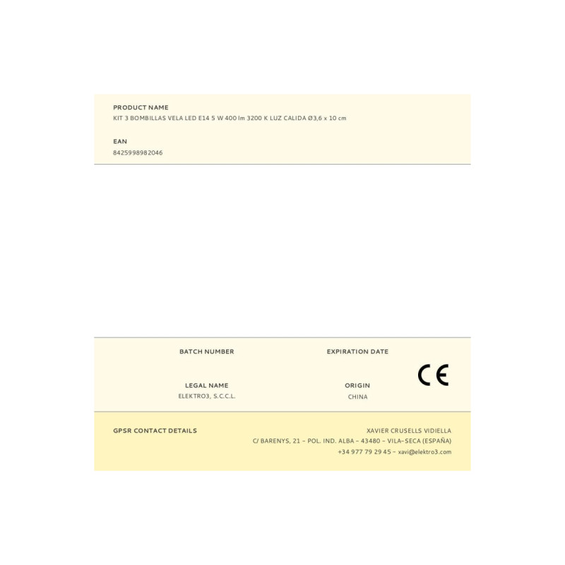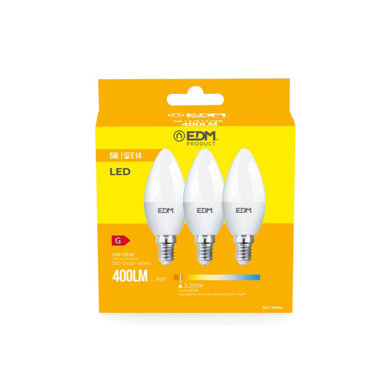 Kit 3 ampoules LED E14 5W 400lm 3200K - Lumière chaude - EDM - Réf. 98204