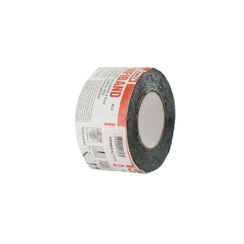 Bande d'étanchéité autocollante à froid gris plomb EMFI 10cm x 10m est une bande d'étanchéité à base de bitume modifié surfacé et d'une feuille d'aluminium. Grâce à ces bandes d'étanchéité vous pourrez effectuer des travaux d'étanchéisation et réparer différentes surfaces notamment, l'asphalte, le feutre bitumineux, le verre, les métaux, le bois, les matières plastiques, le béton, le mortier, les peintures, le plâtre, les briques, les ardoises, les tuiles, les pierres, les mousses isolantes et bien d'autres encore.