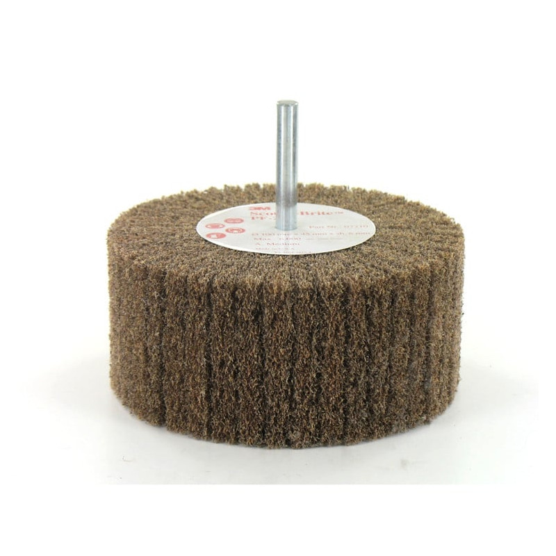 Brosse 3M scotch-brite PF-ZS medium diamètre 100 mm. La structure flexible des brosses scotche-brite permet une grande souplesse d'utilisation et une agressivité contrôlée pour toutes les opérations de finition,tout particulièrement sur surface difficiles d'accès. Les différentes nappes non tissées scotch-brite ne déforment pas la géométrie des pièces travaillées et procurent un fini uniforme et reproductible sur tous types de métaux. La gamme de densités brosse imprégnées ou non et de grains proposée, permet l'obtention de tous les niveaux de finition.