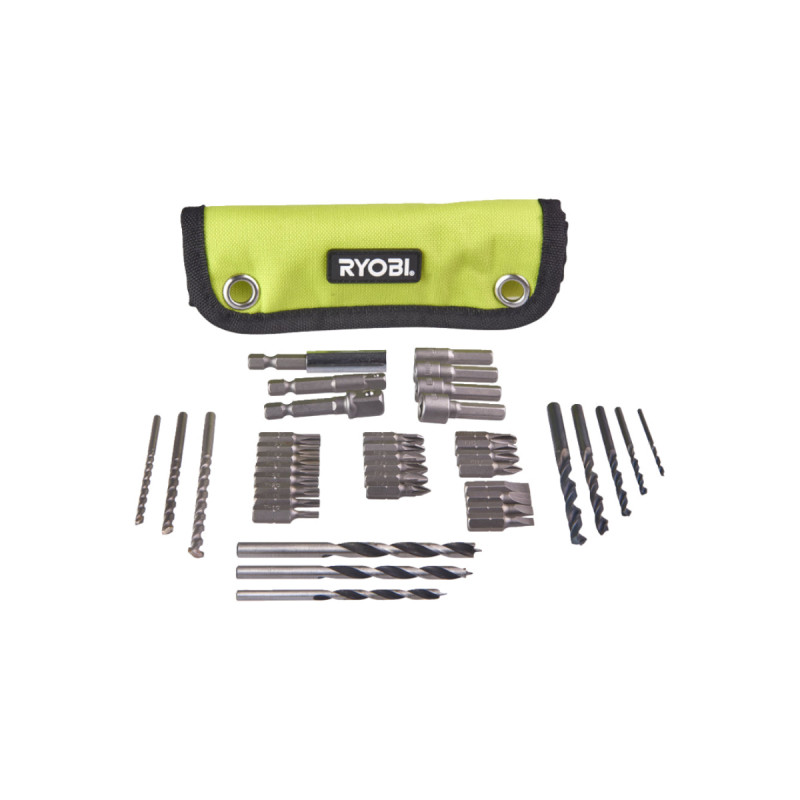Une trousse textile RYOBI 40 accessoires de perçage métal - bois - béton RAK40RM