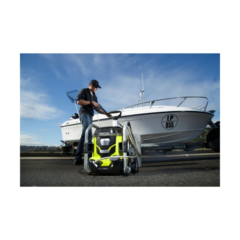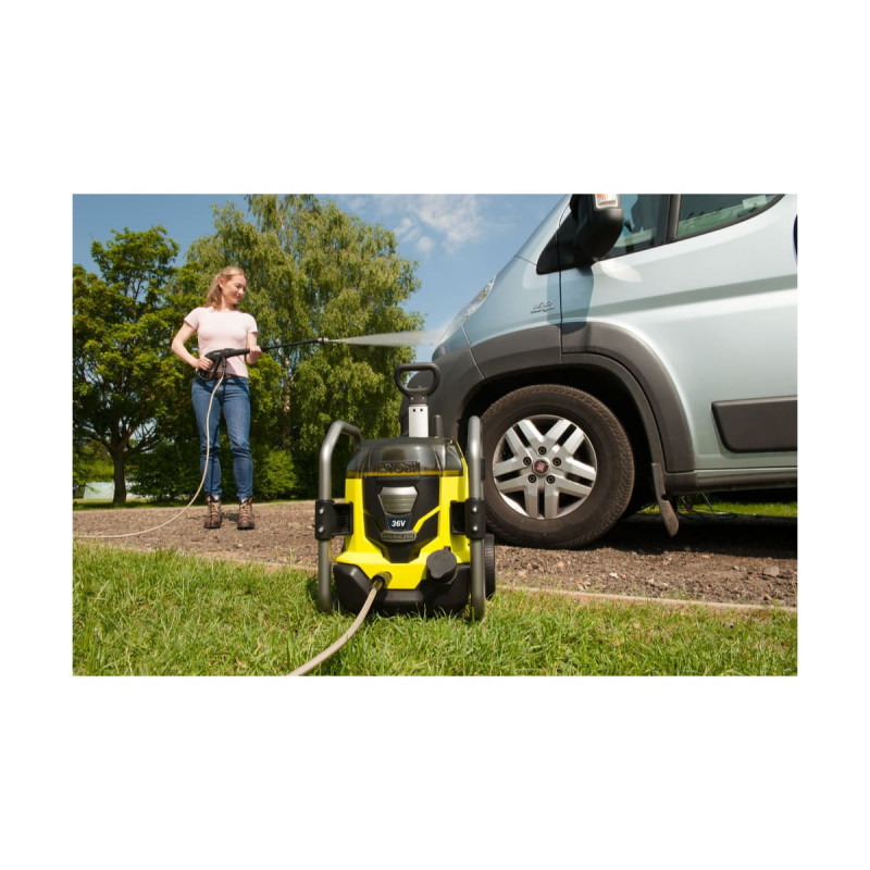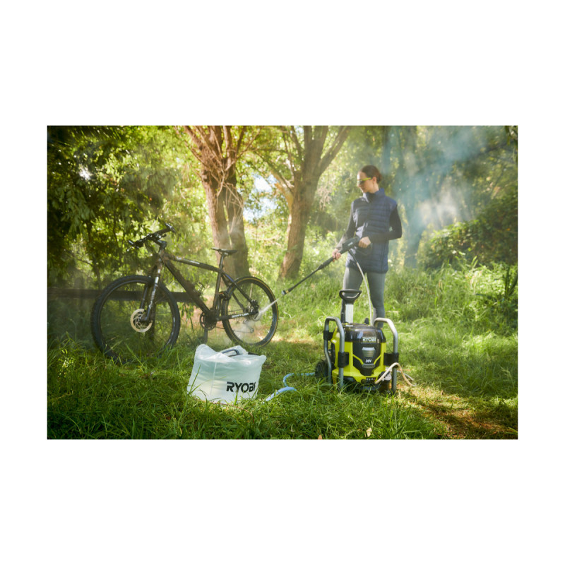 Le nettoyeur haute pression RYOBI 36V LithiumPlus moteur sans charbon RPW36120HI est idéal pour nettoyer la voiture, votre jardin et toute surface inférieure à 20 m². Il vous offre une utilisation nomade grâce à sa poche d'eau de 25 L. L'appareil fonctionne avec une batterie 36V qui est compatible avec tous les autres outils RYOBI de la même gamme.