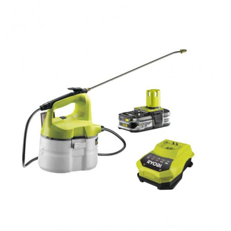 Pack RYOBI contenant un pulvérisateur 18V One+ 3.5L, 1 batterie 1.5Ah et 1 chargeur rapide 1.8Ah OWS1880-L15 prêt à l'emploi, idéal pour votre jardin.En effet, grâce à la polyvalence du pulvérisateur et associé, vous pourrez soit effectuer des petits désherbage, d'entretenir vos plantes et de traiter vos façades.
