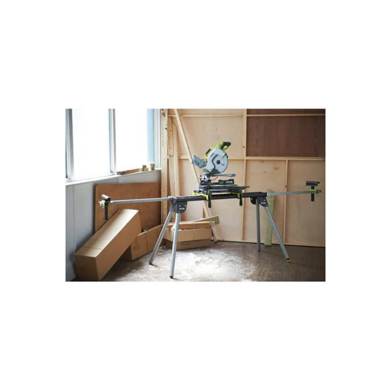 Support universel RYOBI pour scie à coupe d'onglets extension 2904mm RLS01HG compatible avec toutes marques et piètement robuste acier repliable pour des performances optimales.