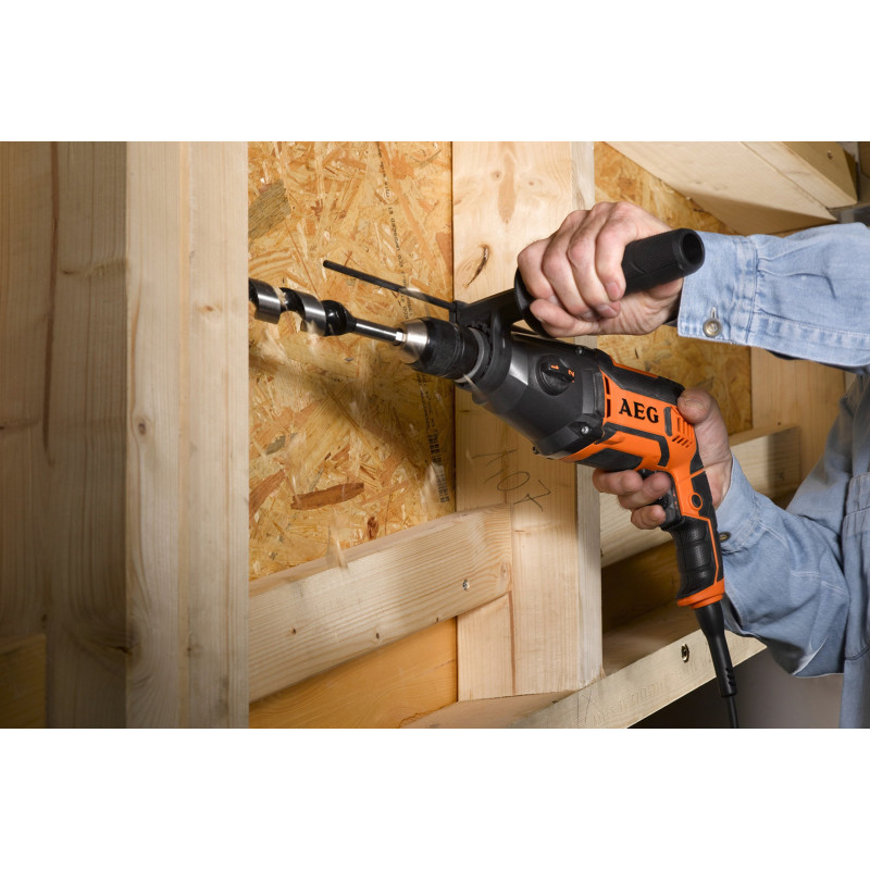 Perceuse à percussion électrique AEG 850W 2 vitesses SB2E 850 R avec variateur électronique via une molette de préréglage de la vitesse idéal pour une utilisation stationnaire ou pour les applications de malaxage.