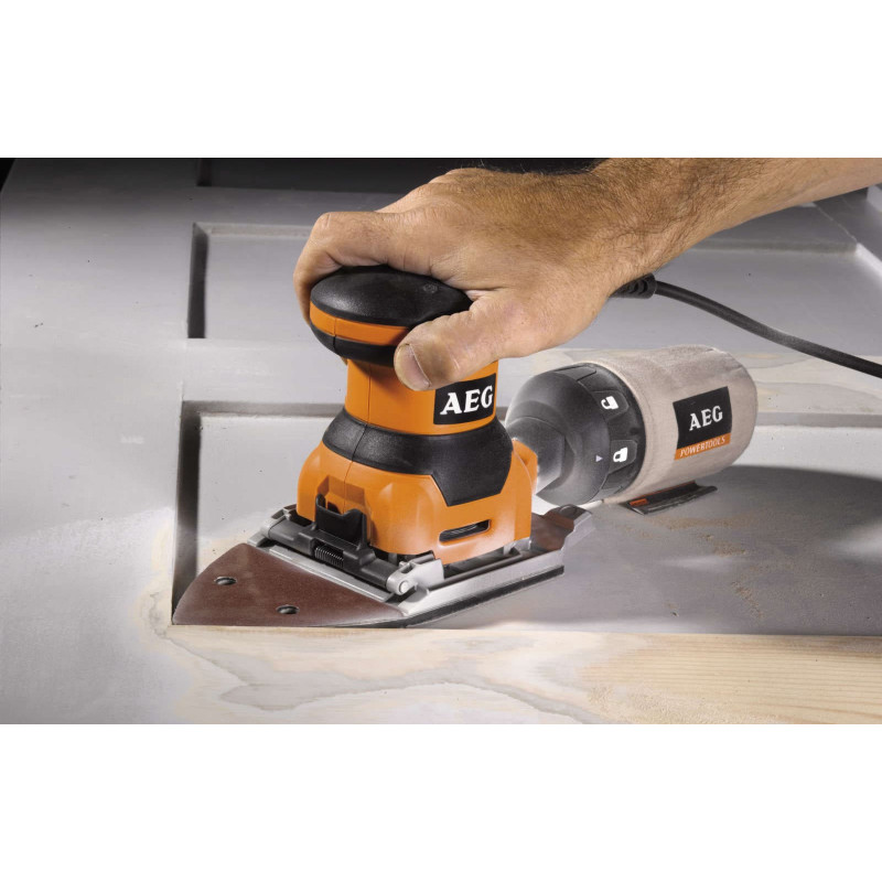 Ponceuse vibrante électrique AEG 260W 254mm FDS 140 avec variateur de vitesse pour un rendu parfait ! Sa forme ergonomique et compacte offre des performances de guidage précis à une seule main.