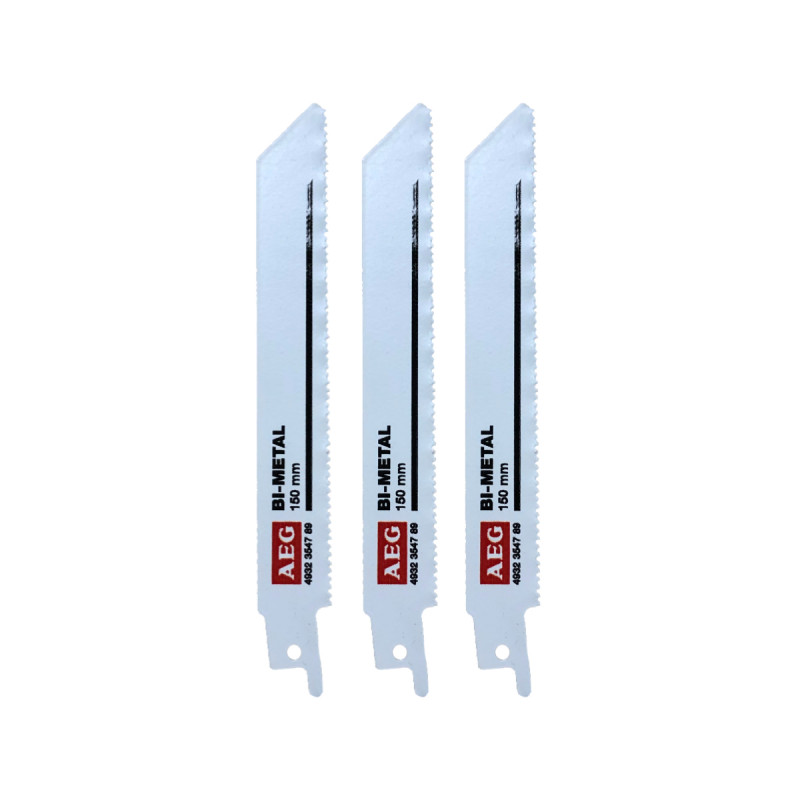 Le jeu de 3 lames scie sabre AEG 1.8x150mm S922BF prêt à l'emploi, celles-ci mesurent 150 mm de longueur. Elle vous permettra de découper les métaux compris entre 3 à 10 mm d'épaisseur