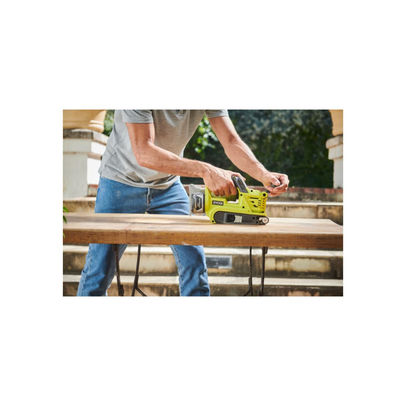 La ponceuse à bande RYOBI 18V One+ - 75 mm - R18BS-0 sera idéale pour les gros travaux de ponçage avec ses larges bandes. Cette ponceuse 18 V est aussi puissante qu'une ponceuse filaire et sera à même d'affronter les gros travaux. Elle appartient à la gamme One+ dans laquelle de nombreux outils sont compatibles avec la même batterie (vendue séparément).
