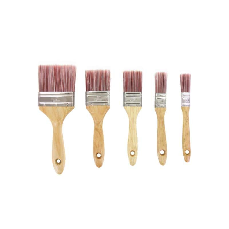 Pack 5 pinceaux synthétiques à bout arrondi destiné aux émulsions et autres peintures à base d'eau, de teintures et lasures dont vernis, teintures pour bois et laques.