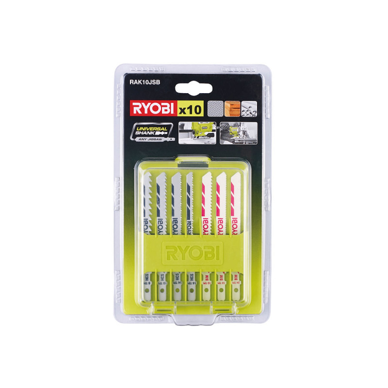 Un coffret de 10 lames pour scie sauteuse RYOBI 102 mm bois - plastique - bi-métal RAK10JSB