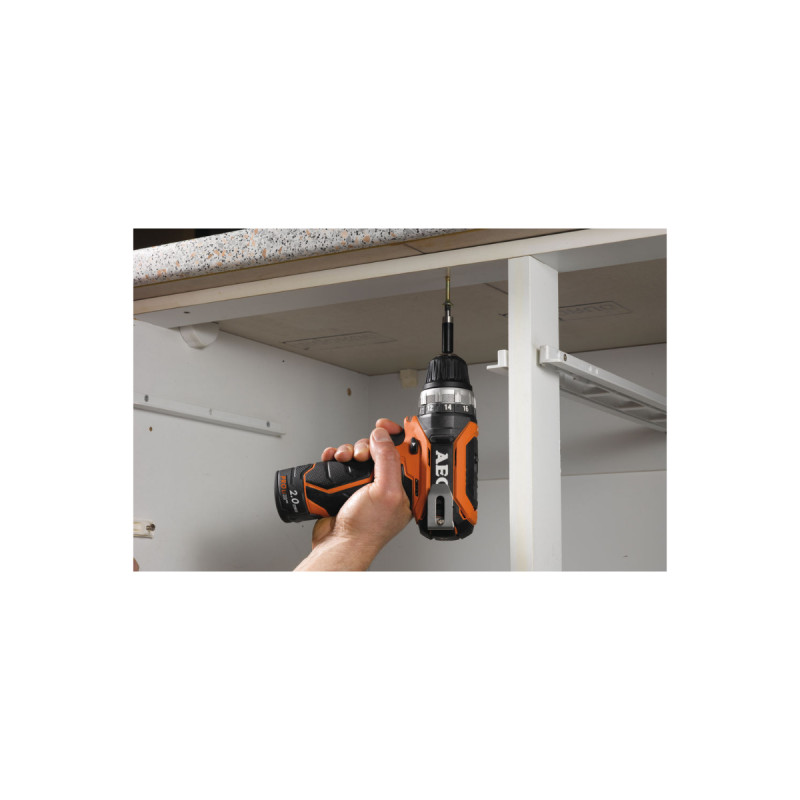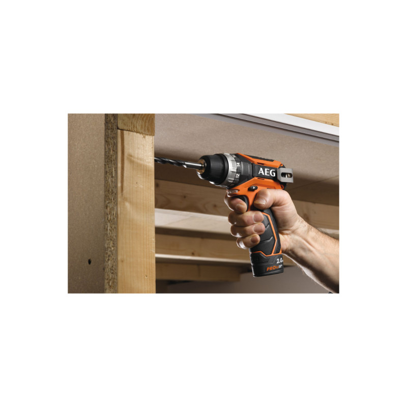 Perceuse visseuse AEG 12V Li-ion - 2 batteries 2.0Ah Pro-Lithium - 1 chargeur 40min - BS12C2-202C ultra compacte, mesurant seulement 168 mm avec un carters et engrenages en magnésium pour une durabilité accrue.