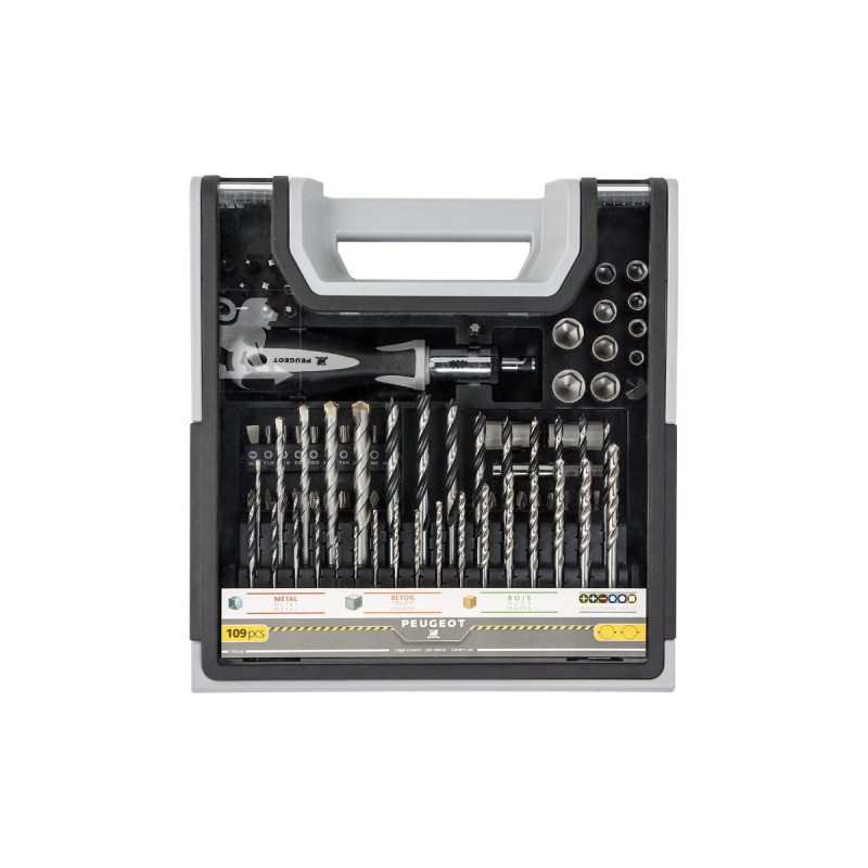 Cette perceuse PEUGEOT ENERGYDRILL-14V15 avec ses accessoires : 2 batteries 14.4V 1.5 Ah, un chargeur, une mallette mixte 108pcs sont idéals pour réaliser vos travaux de perçage de manière efficace.