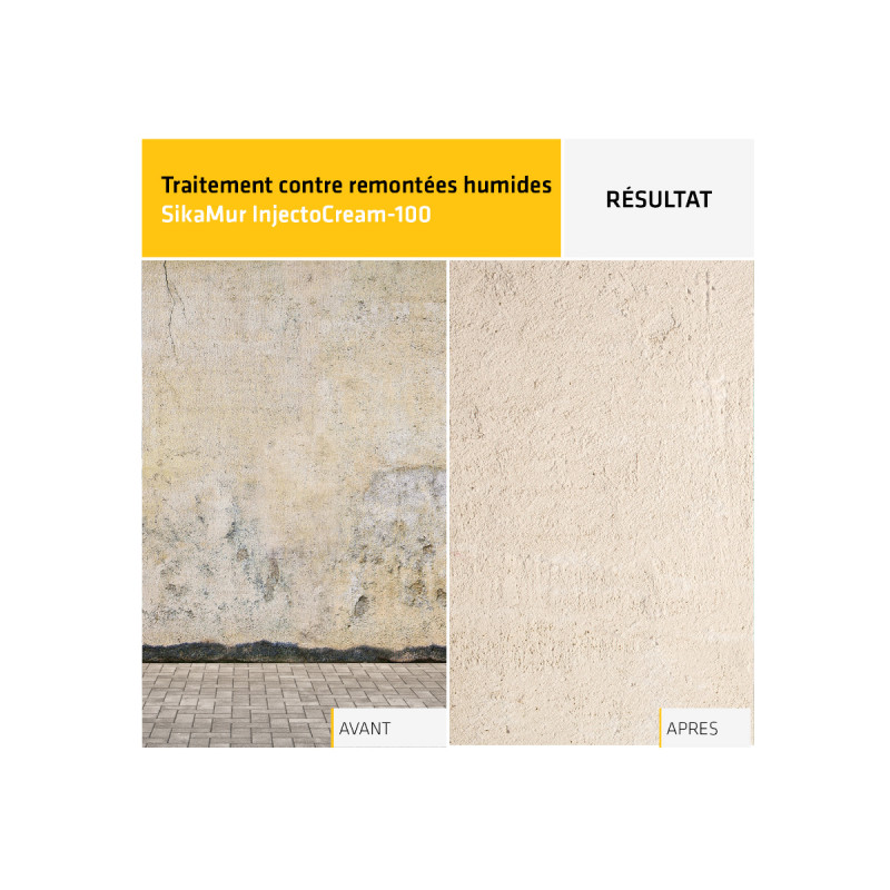 Le kit SikaMur InjectoCream est un kit complet permettant l'application d'une crème d'injection spécialement développée pour le traitement des remontées capillaires dans pratiquement tous les types de murs en maçonnerie (briques, pierres naturelles, parois creuses, murs enterrés, caves, sous-sols, murs de remblais en moellons...) Sa formule concentrée avec environ 80% de matières actives donne des résultats beaucoup plus efficaces comparé à des produits moins concentrés. Une fois injecté, le produit se diffuse dans le mur humide pour former une barrière bloquant l'eau et empêchant l'apparition d'humidité. Prête à l'emploi, elle est facile d'utilisation avec un faible risque d'erreur de manipulation, même pour un novice.